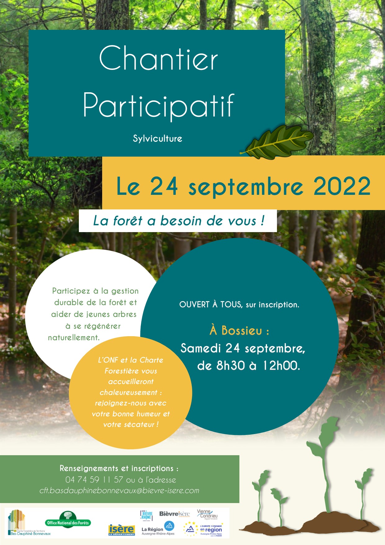 Des chantiers participatifs sont organisés par la Charte Forestière de Bas-Dauphiné et Bonnevaux et l’Office National des Forêts les 17 et 24 septembre 2022.